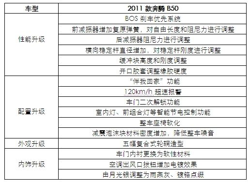 2010年8月26日,一汽奔騰在北京舉辦了隆重的“2011款奔騰B50上市發(fā)布會”。一汽轎車股份有限公司、一汽轎車銷售有限公司相關(guān)領(lǐng)導(dǎo),及全國兩百余家媒體記者出席發(fā)表會。相比舊款車型,2011款奔騰B50累計進(jìn)行了多達(dá)171項商品升級,其中重點升級16項,售價分別為手動豪華型9.88萬、自動豪華型10.98萬、手動尊貴型10。48萬、自動尊貴11.58萬、自動3G型12.58萬。增值不增價的營銷舉措,進(jìn)一步鞏固了2011款奔騰B50“1.6L之王”、“全面越級車”的市場地位。