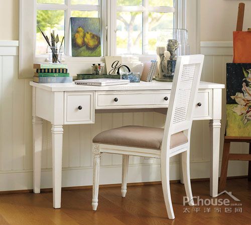 推薦理由:簡單而潔白的構(gòu)造,貌似一張梳妝臺一般,暗暗地呈現(xiàn)金屬色的黑色把手,如同女人的首飾一般,點(diǎn)綴著書桌的美好。